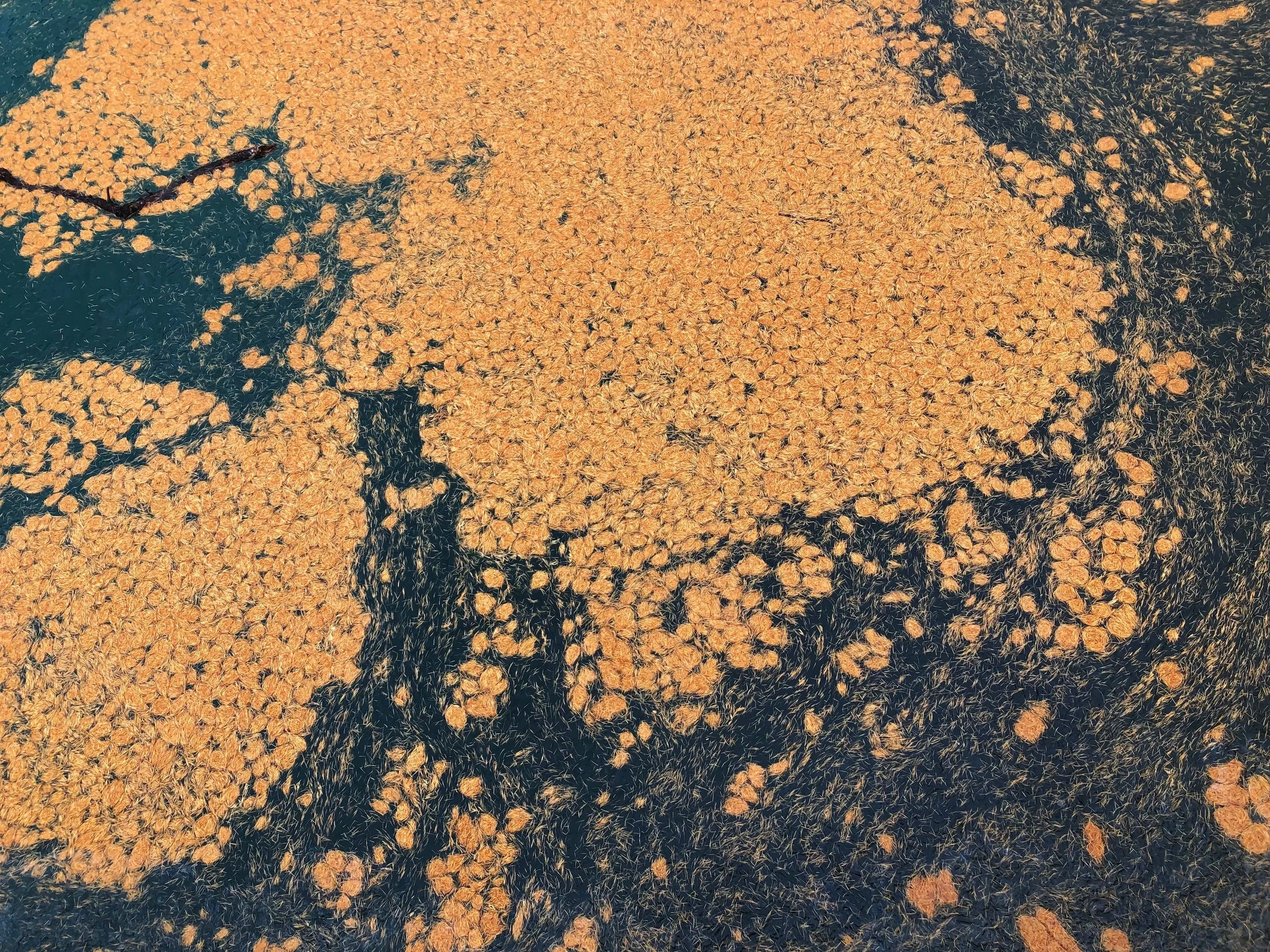 We did this hike around Halloween, so the lake was already freezing over with intricate, glowing pine needle designs interlaced in the emerald ice. The patterns reminded me of the sky in a Starry Night.