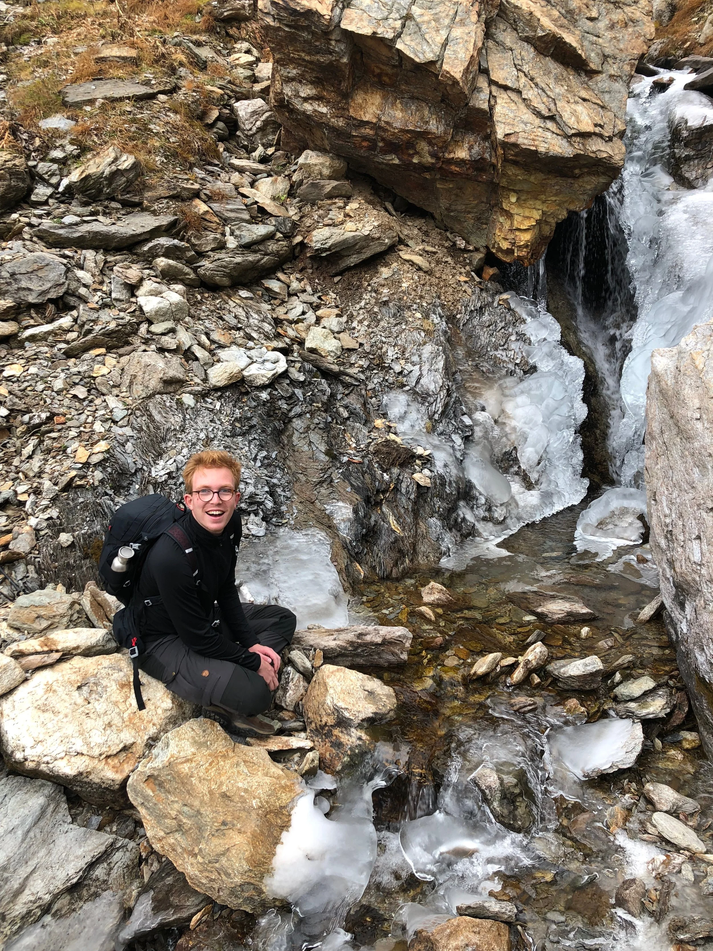 As we continued, the delicate strings of diamond ice-falls not only lured us forward but also graced the edges of our trail. Large crystal ice-gems were entangled in streams of fresh glacier water.