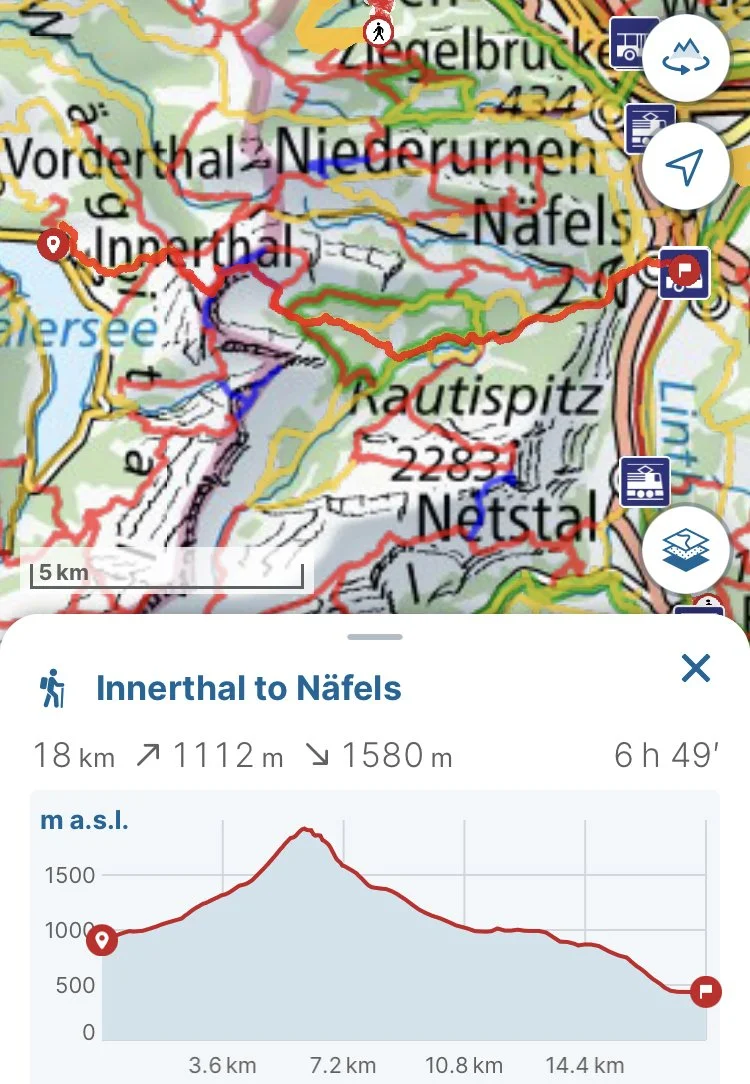This hike starts off the same as the first hike to the summit of Bockmattlistock; however, this hike continues past along the ridge-line towards Tierberg. The path then goes down to Obersee and finishes in Näfels.