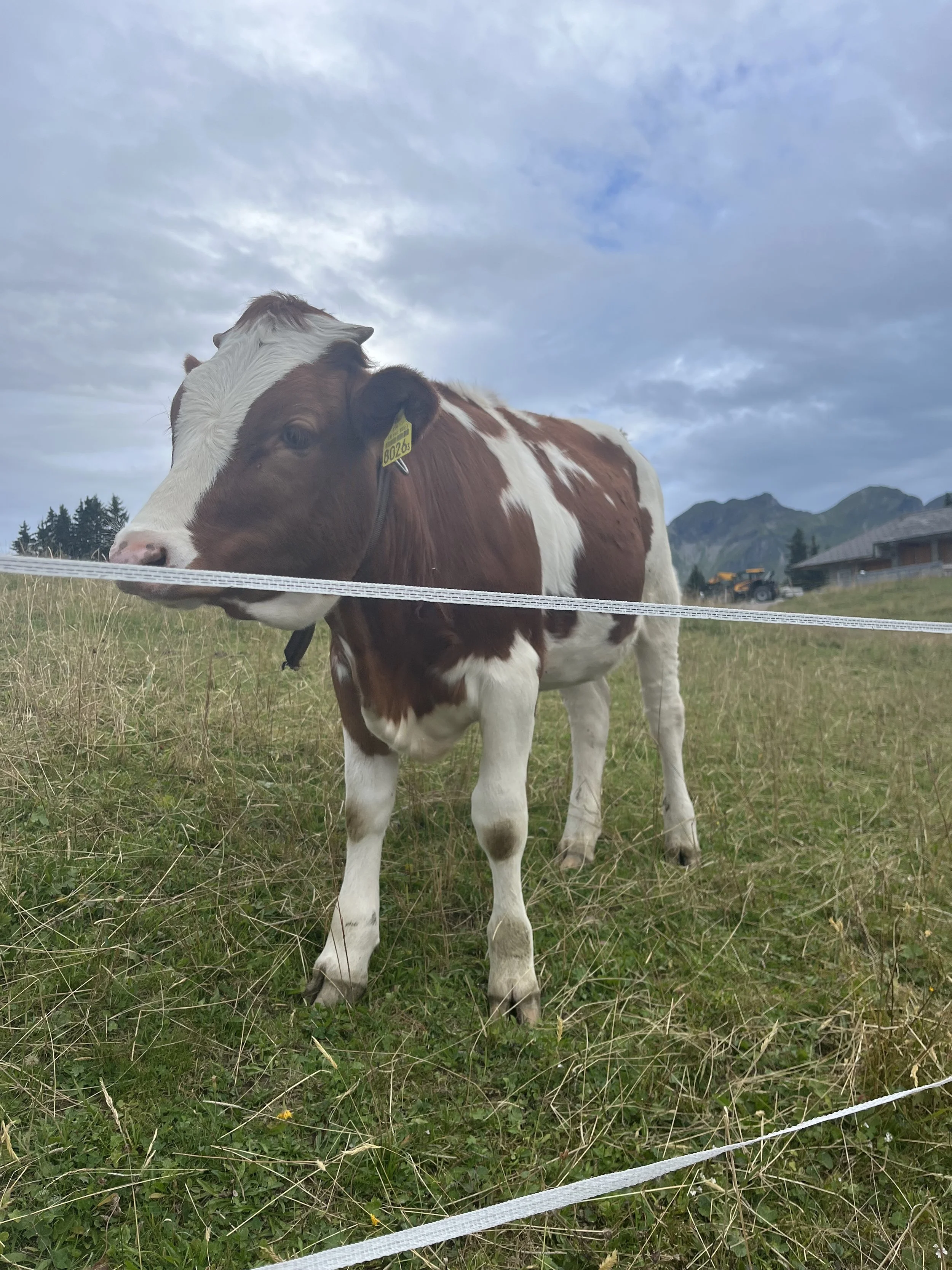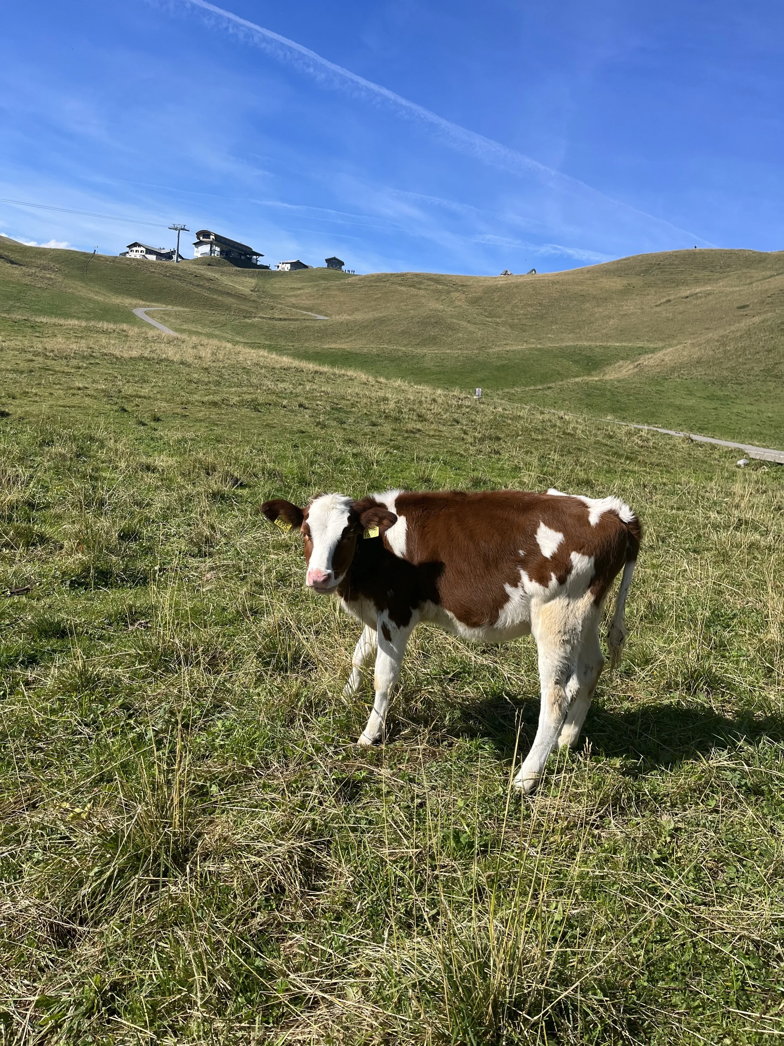 Along the way towards the ski slopes, I met a little cow buddy who was very curious about me and came to say hi.