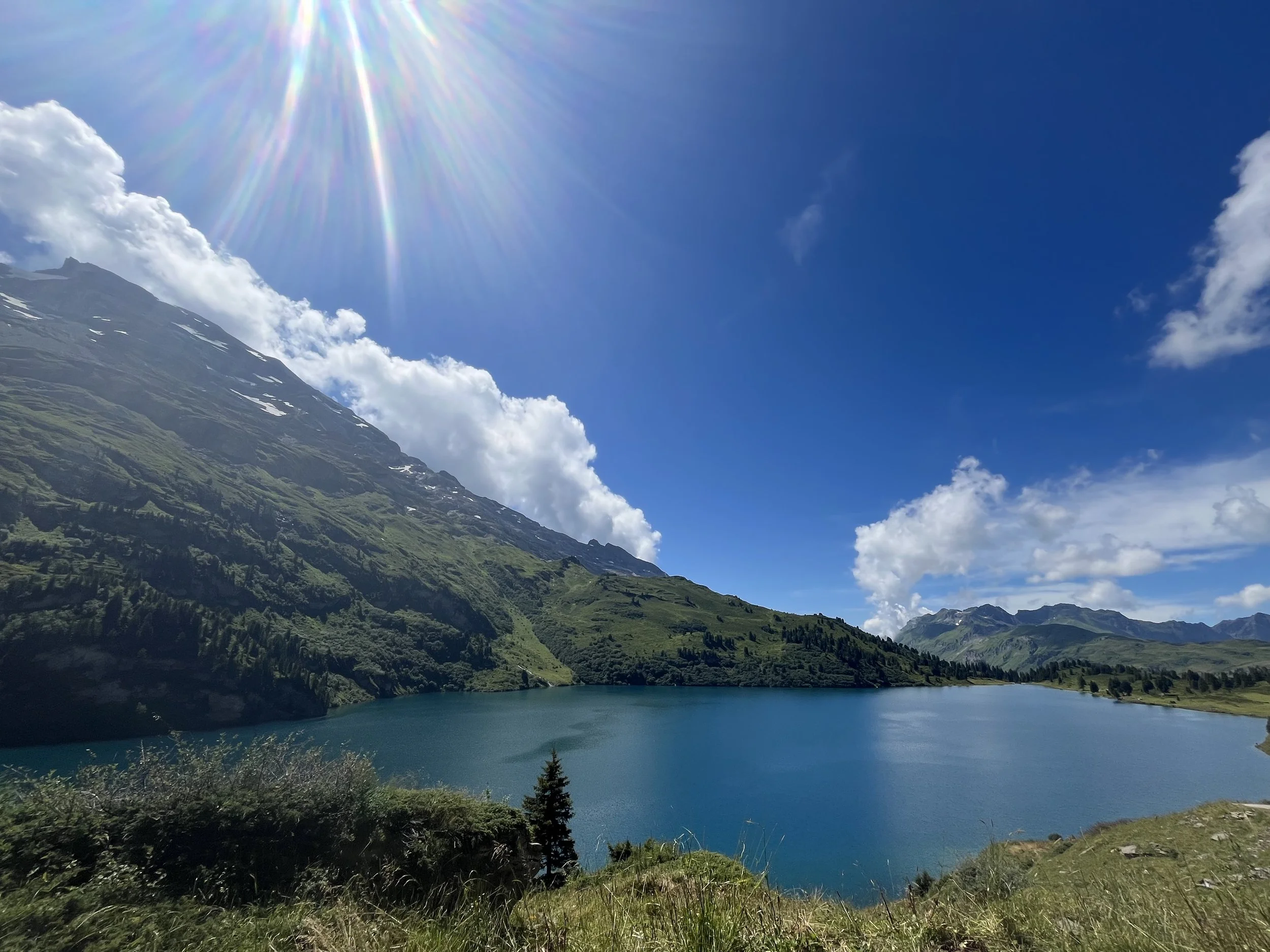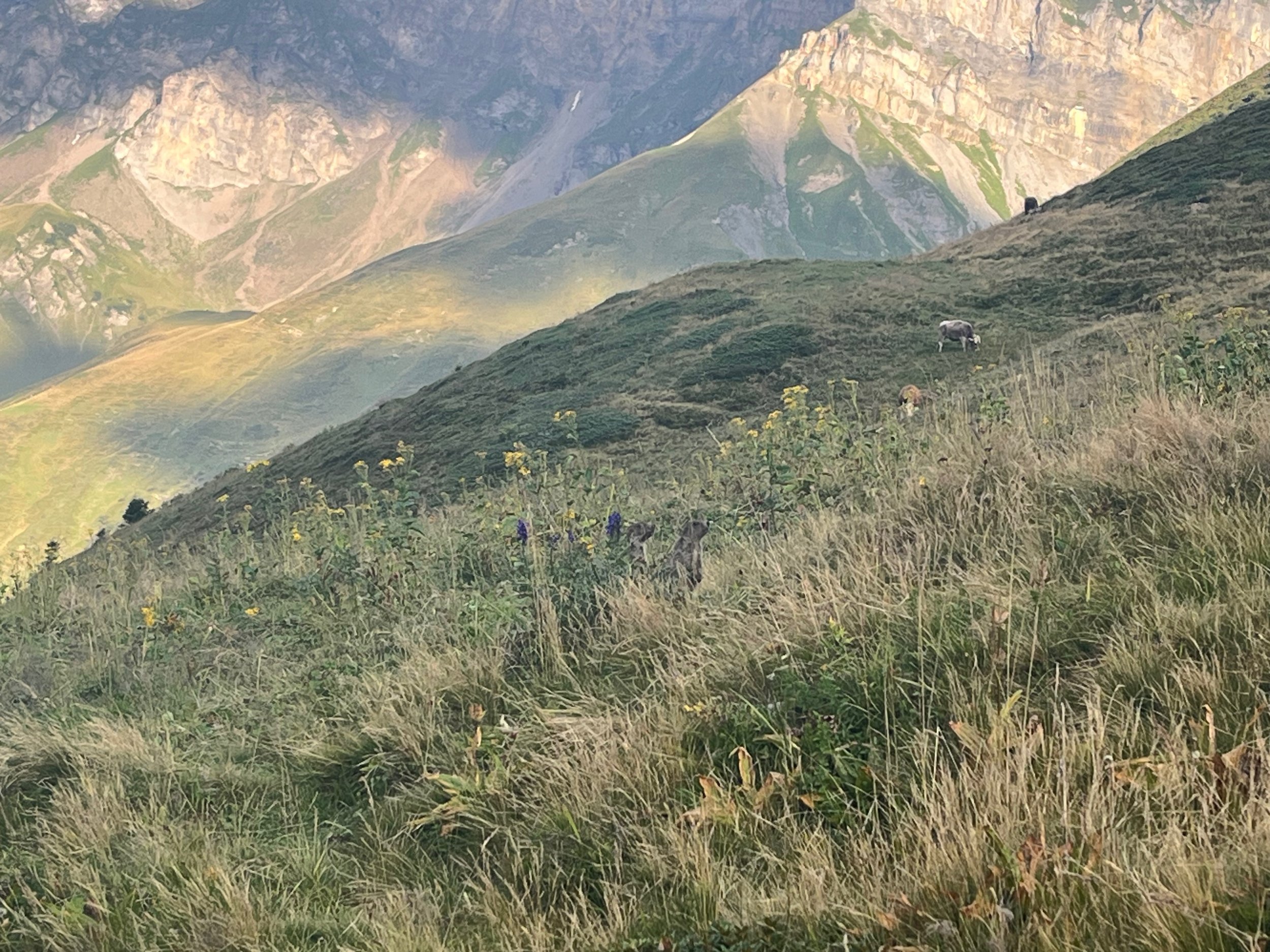 The first day from Engelberg was very hot so I immediately opted for the gondola to Trübsee. After the quick ascent from there to Engstlensee, the cows there at the top even looked exhausted from the heat.