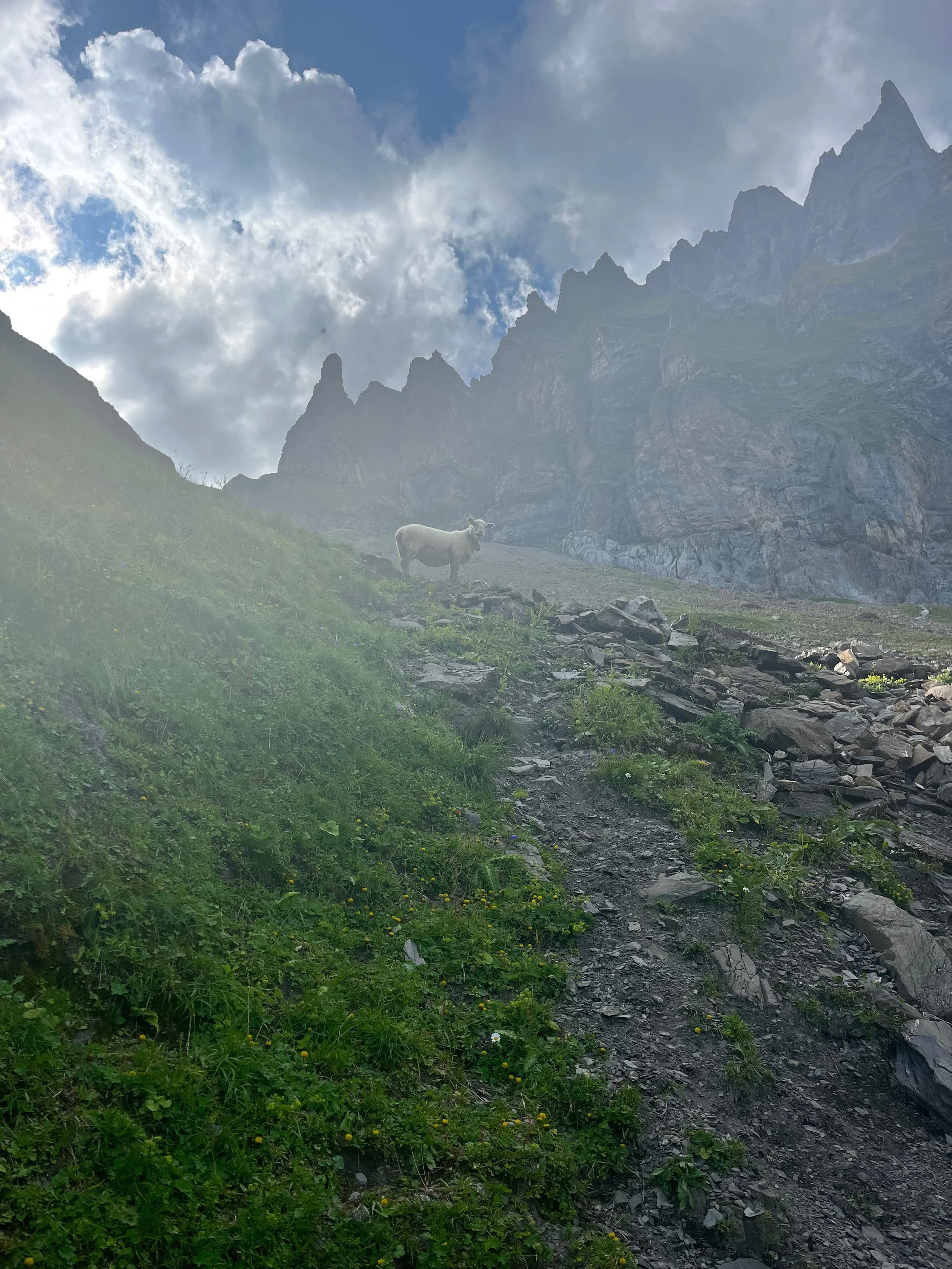 The trail began to become even more challenging and rocky as it twisted to the top of Surenenpass; however, the views were well worth it. There was a herd of sheep that made the trail seem more lighthearted.