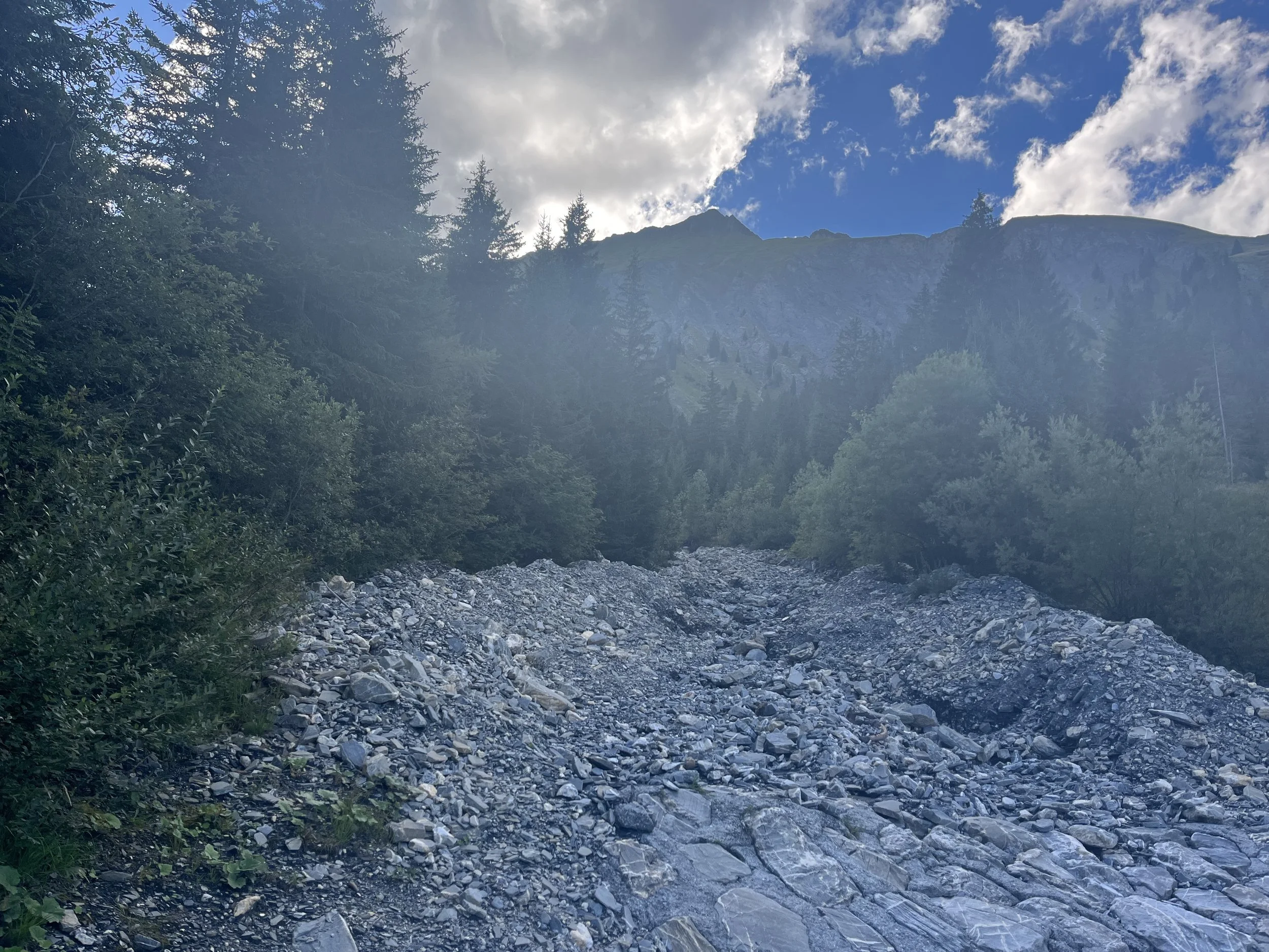 Upon reaching Langschnee, the trail began to become more rocky and steep with old rock slides marking the sides of the trail.