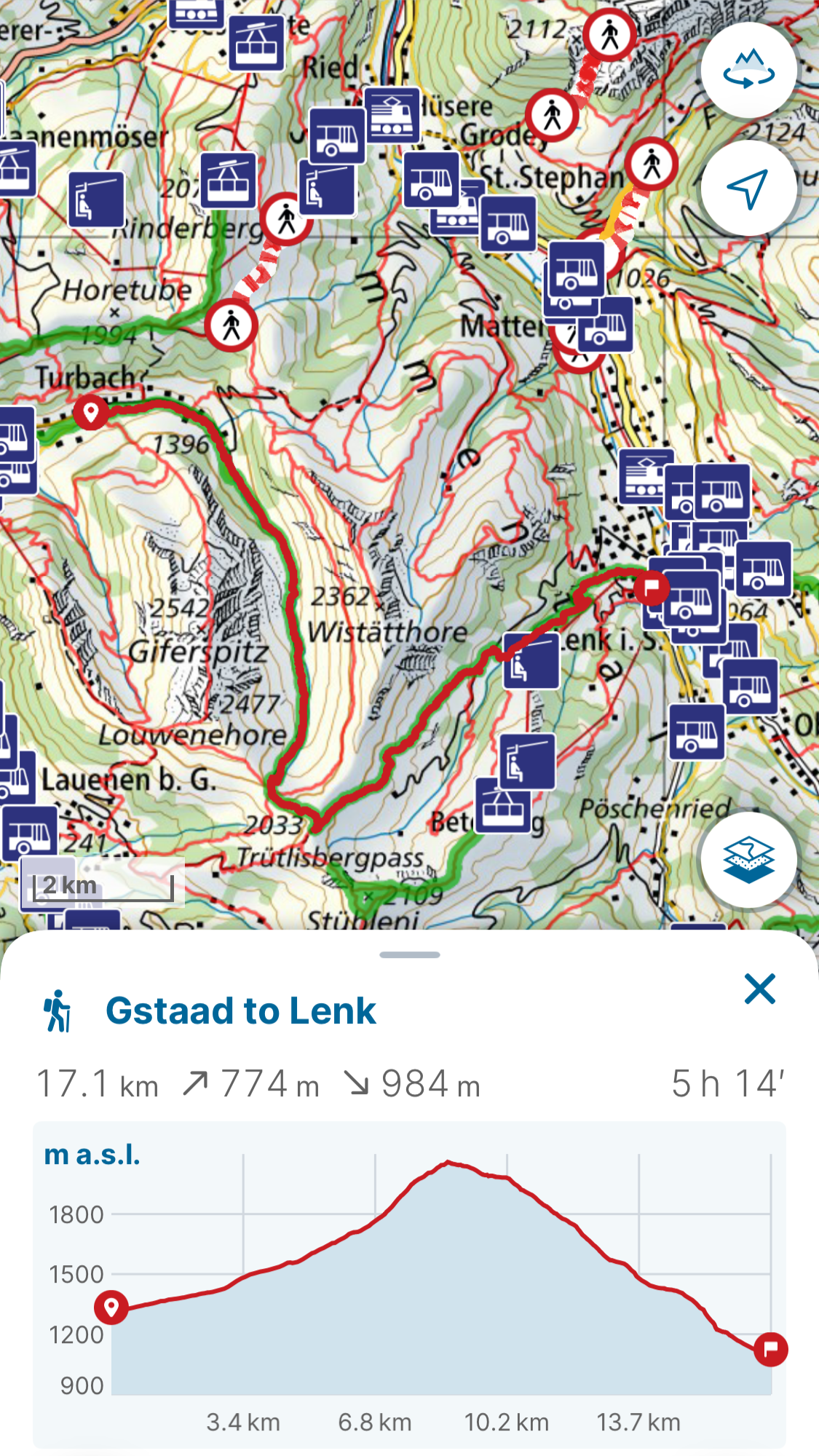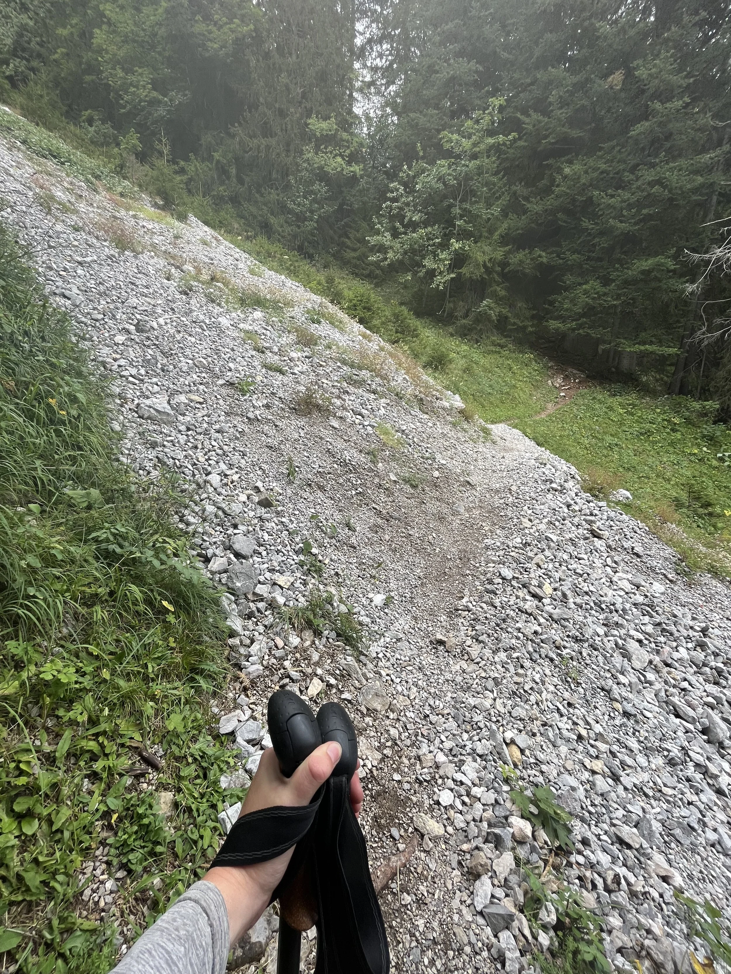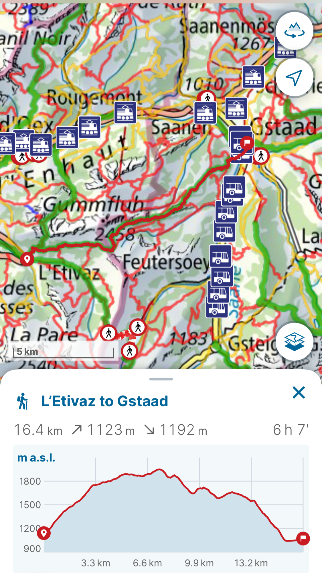 Trail Conditions: The whole trail after the bus was a typical dirt mountain trail with some rocks and grass, but all very technically and physically normal for a typical red and white trail in CH. There was only a brief section of pebble road approaching the final descent into Gstaad around the ski slopes.