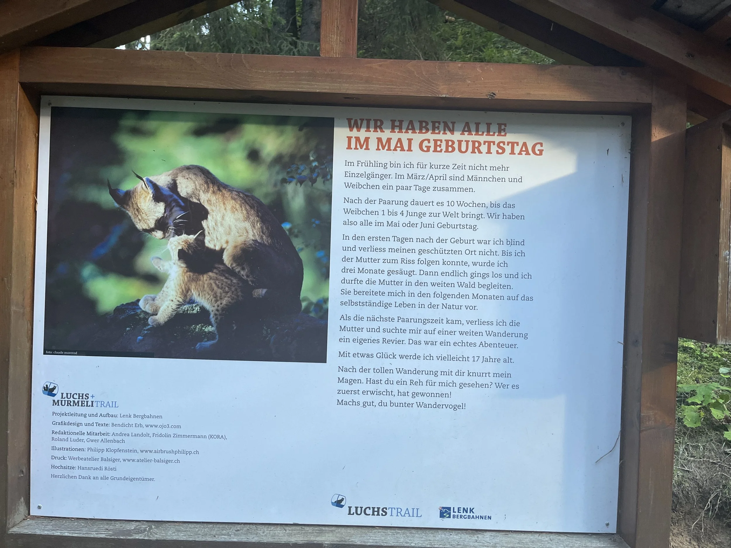 The rest of the path followed the river down into Lenk. Shortly after, the lynx trail began with cute information about lynx!
