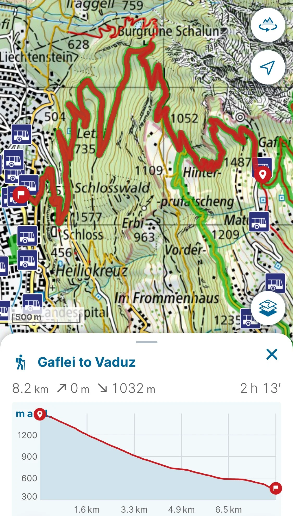 At the end there was the bottom of the lift where there were bathrooms and a bus stop. This is where my journey ended for that year and then I resumed the middle part of the Via Alpina the next year.