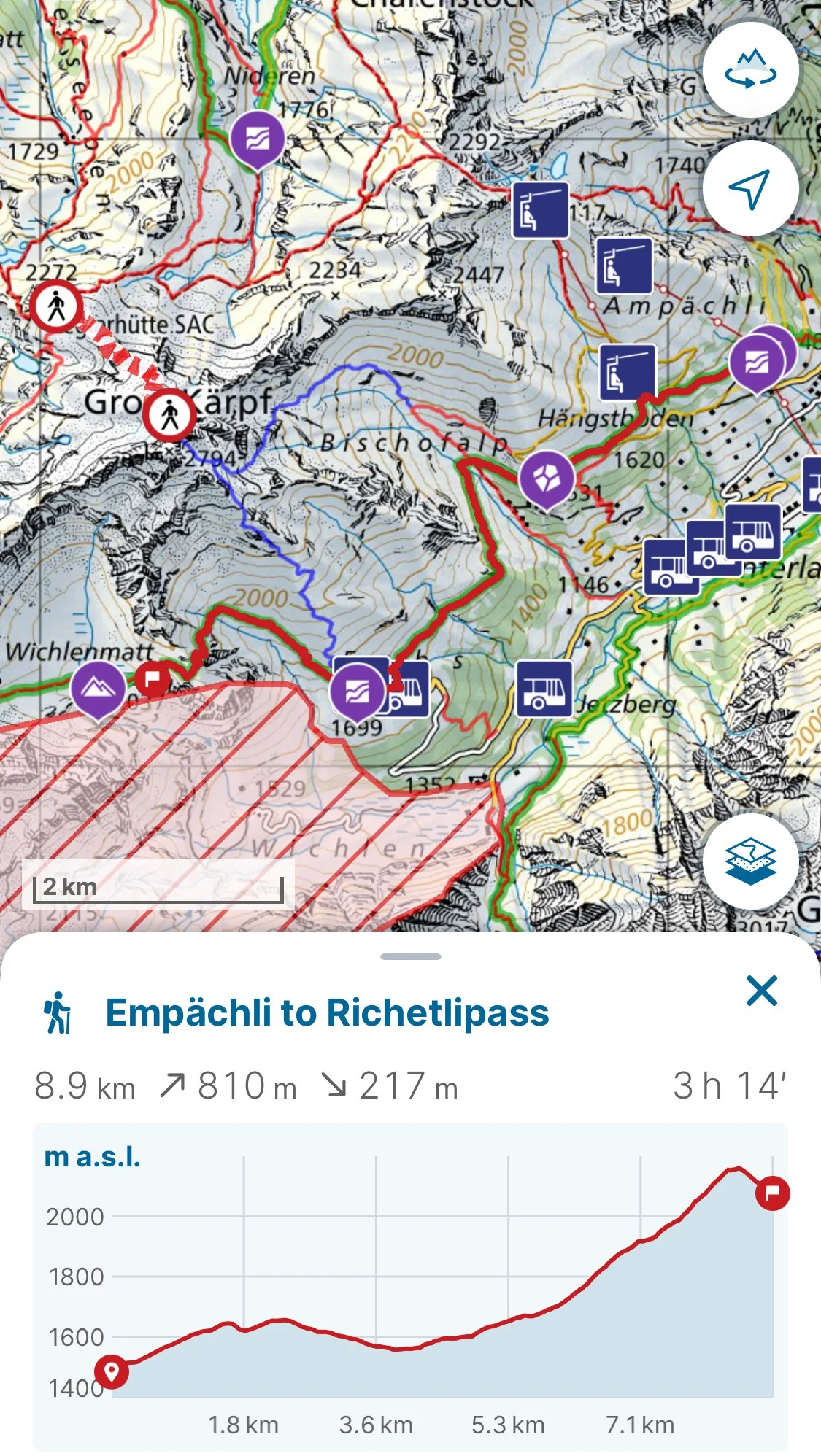 Trail Conditions: Very rocky/steep conditions around Richetlipass with risks of falling rocks. After inital descent, the trail becomes a dirt road before turning into a dirt trail through the forest.