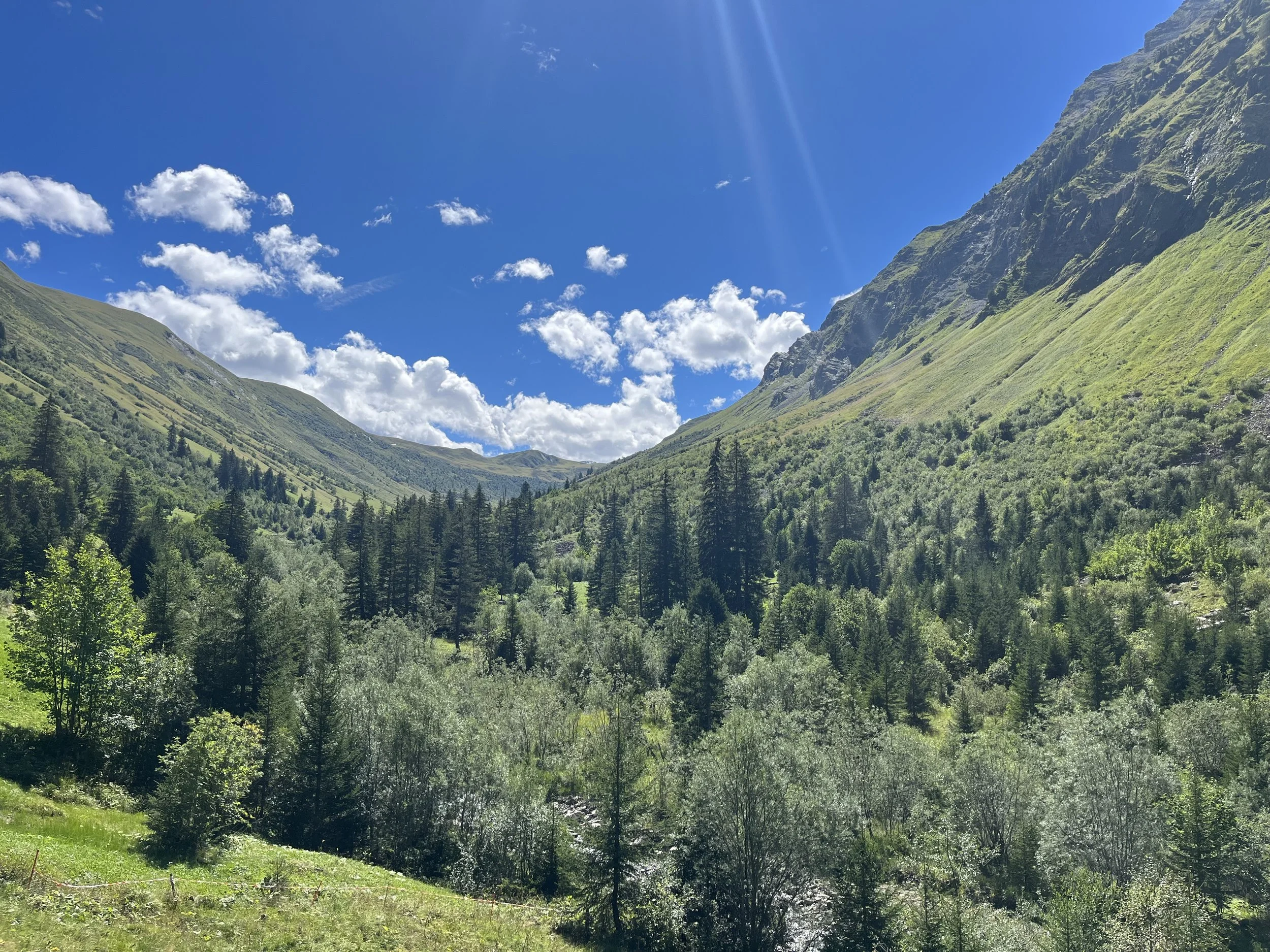 Honestly, this was one of the toughest days for me despite the trail not being that physically or technically challenging. I had a migraine this day and there was absolutely no shade after exiting the forest first thing in the morning. I ended up sleeping for a couple of hours in a blueberry bush surrounded by cows under the heat of the sun. The path up to the cow pasture was rocky and beautiful brimming with rushing waterfalls and wildlife. There was a chamois running across the valley when I was crossing and I also saw a hunter carrying one on his shoulders.