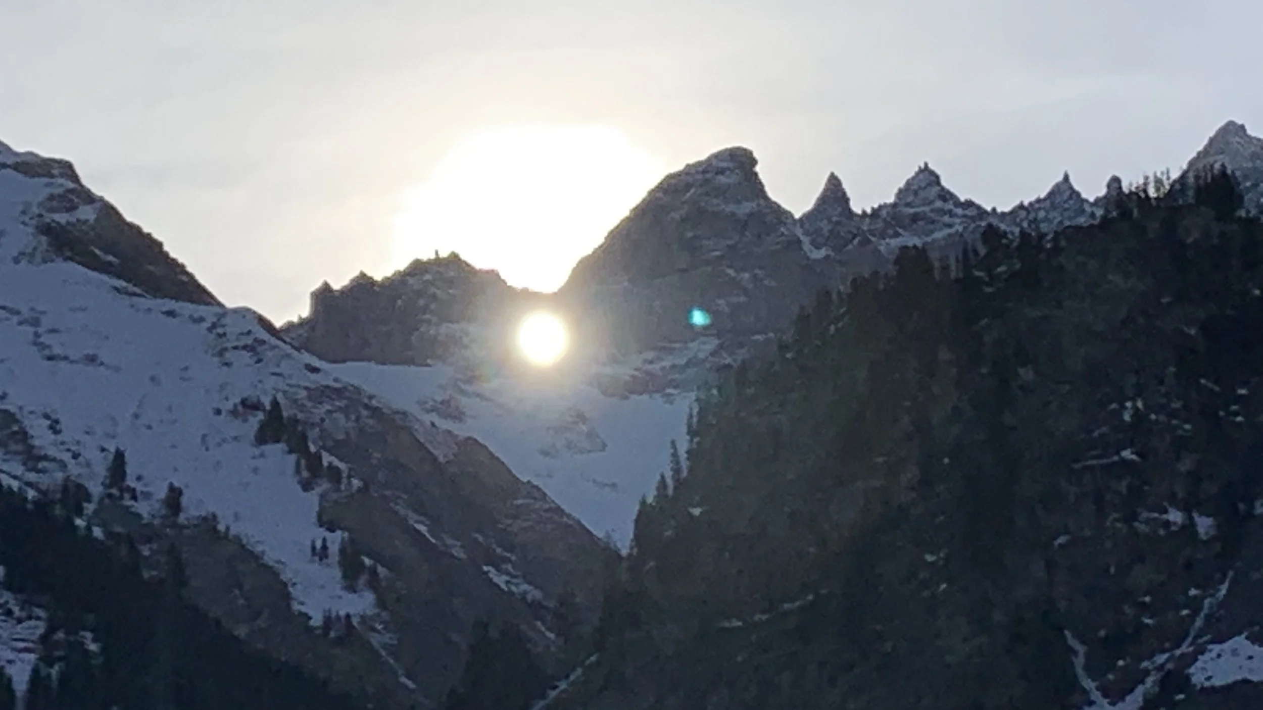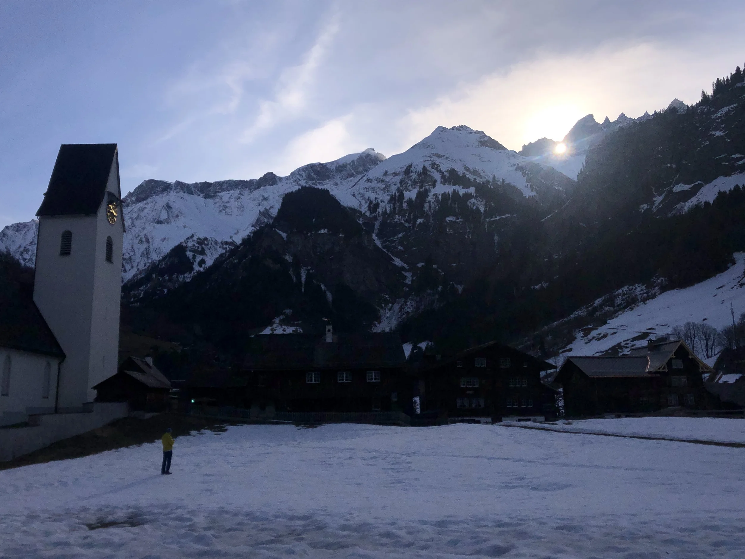 After the incredible sunrise, we journeyed to Elm, Sportbahnen to take a gondola up to Empächli were there was a short winter walk with amazing views of the mountains including Martin’s hole. There were also a bunch of old, traditional huts along the trail. At the furthest point of the winter walk there was scenic restaurant, Berghotel Bischofalp, were we stopped to admire the view from the patio.